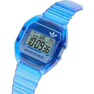 This Adidas watch has a case made of Resin with a diameter of 36 mm and is fitted with a Resin band. Inside the case lies a Timex movement and the watch features a Acrylic crystal.