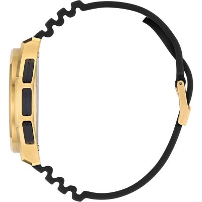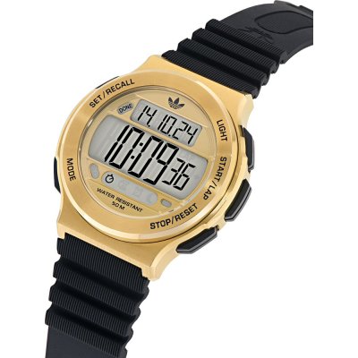 This Adidas watch has a case made of stainless steel with a diameter of 44 mm and is fitted with a rubber band. Inside the case lies a Timex movement and the watch features a Mineral crystal.