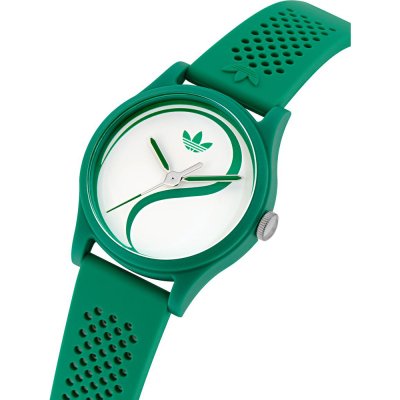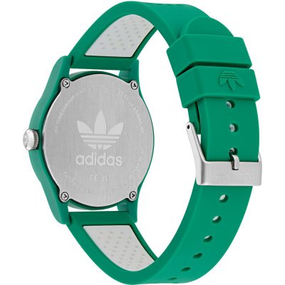 This Adidas watch has a case made of Resin with a diameter of 38 mm and is fitted with a rubber band. Inside the case lies a Timex movement and the watch features a Acrylic crystal.