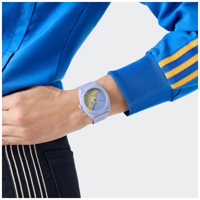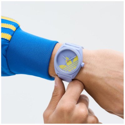 This Adidas watch has a case made of BioCeramic with a diameter of 44 mm and is fitted with a Bio-sourced resin band. Inside the case lies a Timex movement and the watch features a Mineral crystal.