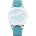 This Alpina watch strap is made of silicone and is attached to the watch by means of pushpins. The band has a width of 21 mm. The strap has no straight mount which means that this strap is only suitable for the watches listed below.