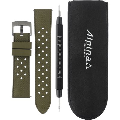 This Alpina watch strap is made of rubber and is attached to the watch by means of pushpins. The band has a width of 21 mm and is closed by means of a buckle. The strap has a straight mount which means that this strap is suitable for all Alpina watches with a straight mount.