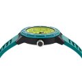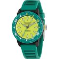 This Aston Martin watch has a case made of Resin with a diameter of 40 mm and is fitted with a rubber band. Inside the case lies a Timex movement and the watch features a Mineral crystal.