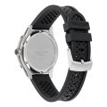 This Aston Martin watch has a case made of stainless steel with a diameter of 38 mm and is fitted with a stainless steel band. Inside the case lies a Timex movement and the watch features a Mineral crystal.