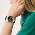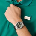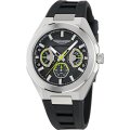 This Aston Martin watch has a case made of stainless steel with a diameter of 42 mm and is fitted with a rubber band. Inside the case lies a Timex movement and the watch features a Mineral crystal.