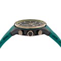 This Aston Martin watch has a case made of stainless steel with a diameter of 44 mm and is fitted with a rubber band. Inside the case lies a Seiko Instruments Inc. movement and the watch features a Mineral crystal.