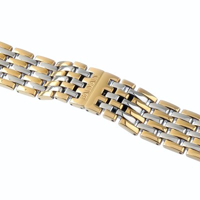 This Balmain watch strap is made of stainless steel and is attached to the watch by means of saddle screw. The band has a width of 18 mm and is closed by means of a butterfly clasp with push buttons. The strap has no straight mount which means that this strap is only suitable for the watches listed below.