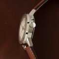 This Bauhaus watch has a case made of stainless steel with a diameter of 42 mm and is fitted with a leather band. Inside the case lies a Miyota movement and the watch features a K1 Mineral crystal.