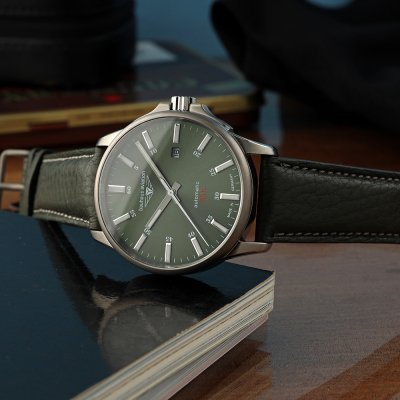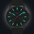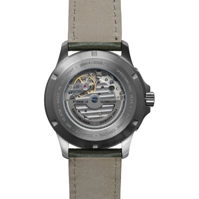 This Bauhaus watch has a case made of titanium with a diameter of 42 mm and is fitted with a leather band. Inside the case lies a Miyota movement and the watch features a Sapphire crystal.