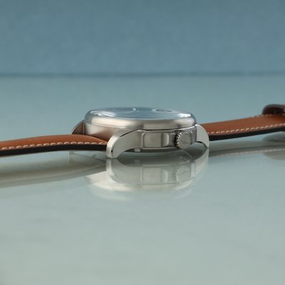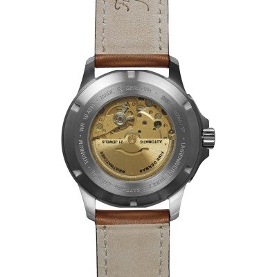 This Bauhaus watch has a case made of titanium with a diameter of 42 mm and is fitted with a leather band. Inside the case lies a Miyota movement and the watch features a Sapphire crystal.