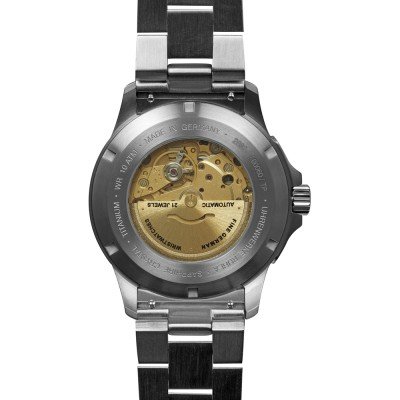 This Bauhaus watch has a case made of titanium with a diameter of 42 mm and is fitted with a titanium band. Inside the case lies a Miyota movement and the watch features a Sapphire crystal.