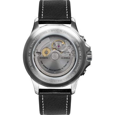 This Bauhaus watch has a case made of stainless steel with a diameter of 40 mm and is fitted with a leather band. Inside the case lies a Miyota movement and the watch features a Sapphire crystal.