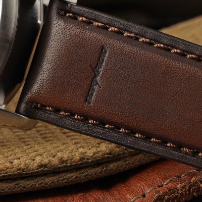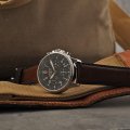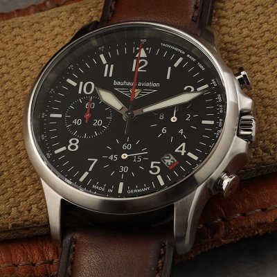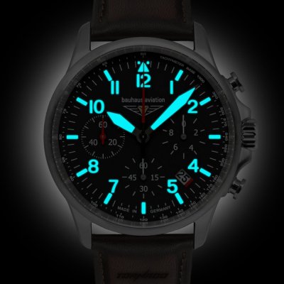 This Bauhaus watch has a case made of stainless steel with a diameter of 42 mm and is fitted with a leather band. Inside the case lies a Miyota movement and the watch features a K1 Mineral crystal.