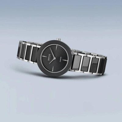 This Bering watch has a case made of stainless steel with a diameter of 29 mm and is fitted with a ceramic band. Inside the case lies a Miyota movement and the watch features a Sapphire crystal.