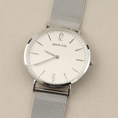 This Bering watch has a case made of stainless steel with a diameter of 41 mm and is fitted with a metal band. Inside the case lies a Miyota movement and the watch features a Sapphire crystal.