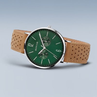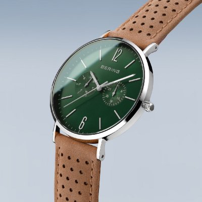 This Bering watch has a case made of stainless steel with a diameter of 40 mm and is fitted with a leather band. Inside the case lies a Seiko Instruments Inc. movement and the watch features a Sapphire crystal.