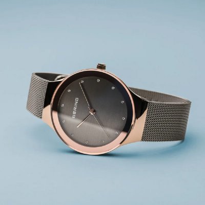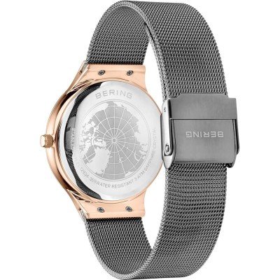 This Bering watch has a case made of stainless steel with a diameter of 34 mm and is fitted with a stainless steel band. Inside the case lies a Miyota movement and the watch features a Sapphire crystal.