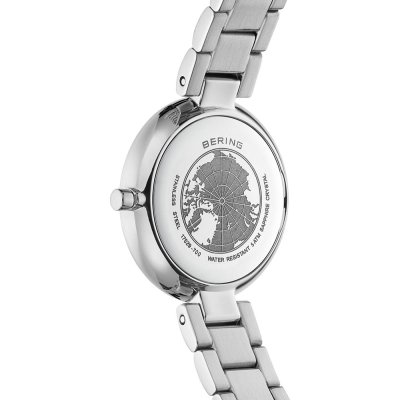 This Bering watch has a case made of stainless steel with a diameter of 29 mm and is fitted with a stainless steel band. Inside the case lies a Miyota movement and the watch features a Sapphire crystal.
