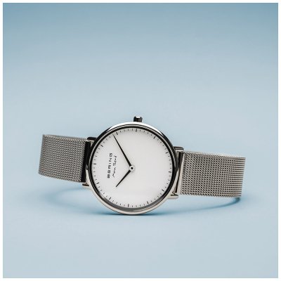 This Bering watch has a case made of stainless steel with a diameter of 30 mm and is fitted with a stainless steel band. Inside the case lies a Miyota movement and the watch features a Sapphire crystal.