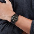 This Boccia watch has a case made of titanium with a diameter of 39 mm and is fitted with a ceramic band. Inside the case lies a Miyota movement and the watch features a Sapphire crystal.