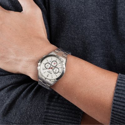 This Boccia watch has a case made of titanium with a diameter of 42 mm and is fitted with a titanium band. Inside the case lies a Seiko Instruments Inc. movement and the watch features a Mineral crystal.