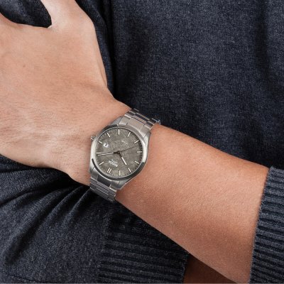 This Boccia watch has a case made of titanium with a diameter of 40 mm and is fitted with a titanium band. Inside the case lies a Miyota movement and the watch features a Sapphire crystal.