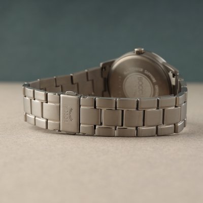 This Boccia watch has a case made of titanium with a diameter of 39 mm and is fitted with a titanium band. Inside the case lies a Seiko movement and the watch features a Sapphire crystal.