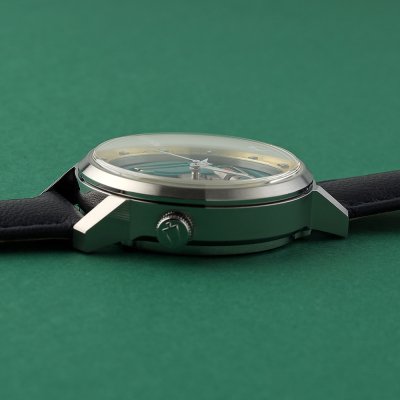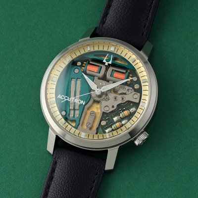 The new Accutron Spaceview is inspired by the original 1960’s watch – an icon of watchmaking history. The Spaceview 314 has a 39mm polished 904L stainless steel case with straight lugs and a crown at 4 o’clock and is paired with a black padded Italian calf leather strap with a double-press foldover clasp. Its main attraction however is the new, hand-assembled Accutron Caliber Y230. It is a true heir to the groundbreaking tuning fork technology from the sixties, accurate to within two seconds per day, and vibrating at 360hz to create the tuning fork’s signature F-sharp hum and smooth sweeping second hand. Refined details include anglage and perlage with Côtes de Genève and frosted finishings.
