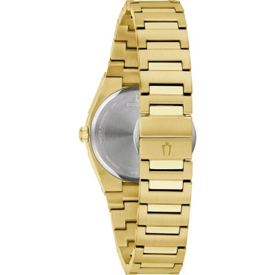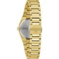 This Bulova watch has a case made of stainless steel with a diameter of 28 mm and is fitted with a stainless steel band. Inside the case lies a Miyota movement and the watch features a Sapphire crystal.