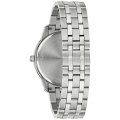 This Bulova watch has a case made of stainless steel with a diameter of 40 mm and is fitted with a stainless steel band. Inside the case lies a Miyota movement and the watch features a Mineral crystal.