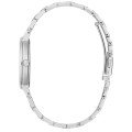 This Bulova watch has a case made of stainless steel with a diameter of 32 mm and is fitted with a stainless steel band. Inside the case lies a Miyota movement and the watch features a Mineral crystal.