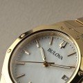 This Bulova watch has a case made of stainless steel with a diameter of 32 mm and is fitted with a stainless steel band. Inside the case lies a Miyota movement and the watch features a Sapphire crystal.
