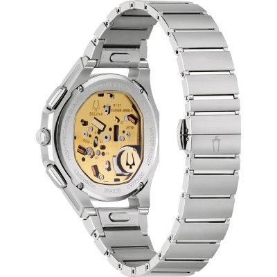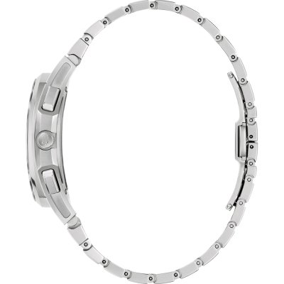 This Bulova watch has a case made of stainless steel with a diameter of 41 mm and is fitted with a stainless steel band. Inside the case lies a Bulova movement and the watch features a Sapphire crystal.
