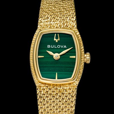 This Bulova watch has a case made of stainless steel with a diameter of 17 mm and is fitted with a stainless steel band. Inside the case lies a Miyota movement and the watch features a Sapphire crystal.