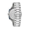 This Bulova watch has a case made of stainless steel with a diameter of 45 mm and is fitted with a stainless steel band. Inside the case lies a Miyota movement and the watch features a Single anti-reflective sapphire crystal.