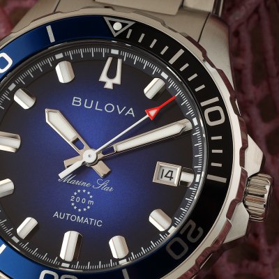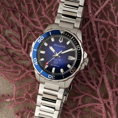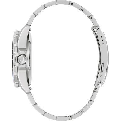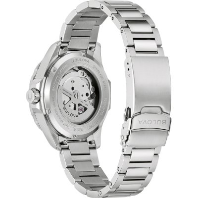 This Bulova watch has a case made of stainless steel with a diameter of 41 mm and is fitted with a stainless steel band. Inside the case lies a Miyota movement and the watch features a Sapphire crystal.