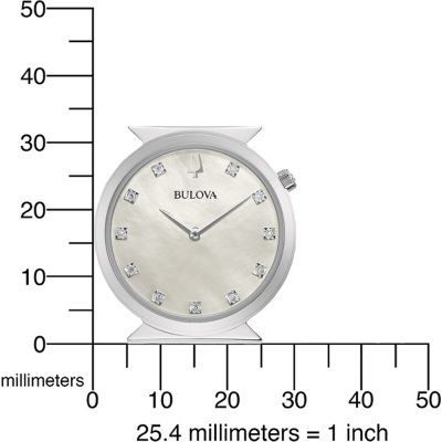 This Bulova watch has a case made of stainless steel with a diameter of 30 mm and is fitted with a stainless steel band. Inside the case lies a Miyota movement and the watch features a Sapphire crystal.