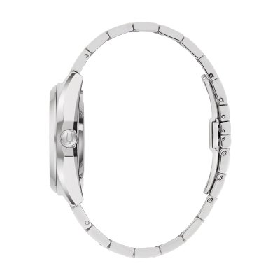 This Bulova watch has a case made of stainless steel with a diameter of 39 mm and is fitted with a stainless steel band. Inside the case lies a Miyota movement and the watch features a Sapphire crystal.