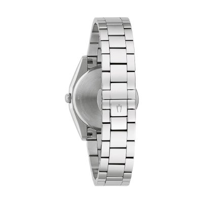 This Bulova watch has a case made of stainless steel with a diameter of 31 mm and is fitted with a stainless steel band. Inside the case lies a Miyota movement and the watch features a Sapphire crystal.