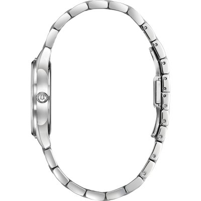 This Bulova watch has a case made of stainless steel with a diameter of 32 mm and is fitted with a stainless steel band. Inside the case lies a Miyota movement and the watch features a Sapphire crystal.