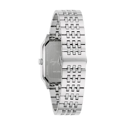 This Bulova watch has a case made of stainless steel with a diameter of 32 mm and is fitted with a stainless steel band. Inside the case lies a Miyota movement and the watch features a Sapphire crystal.