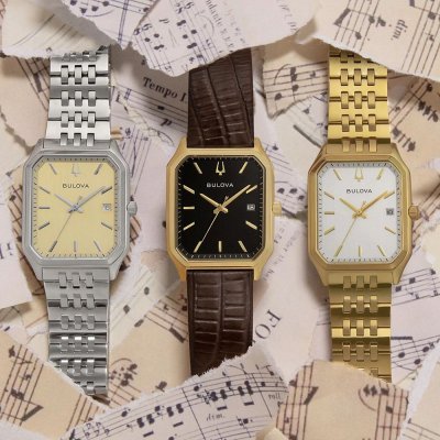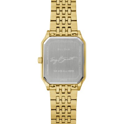This Bulova watch has a case made of stainless steel with a diameter of 32 mm and is fitted with a stainless steel band. Inside the case lies a Miyota movement and the watch features a Sapphire crystal.