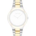 This Calvin Klein watch strap is made of stainless steel and is attached to the watch by means of pushpins. The band has a width of 8.5 mm and is closed by means of a deployment clasp with push buttons. The strap has no straight mount which means that this strap is only suitable for the watches listed below.