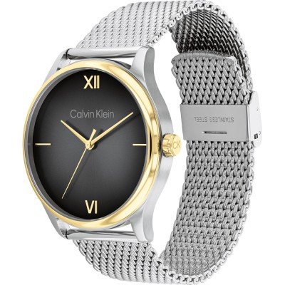 This Calvin Klein watch has a case made of stainless steel with a diameter of 43 mm and is fitted with a stainless steel band. Inside the case lies a Miyota movement and the watch features a Mineral crystal.