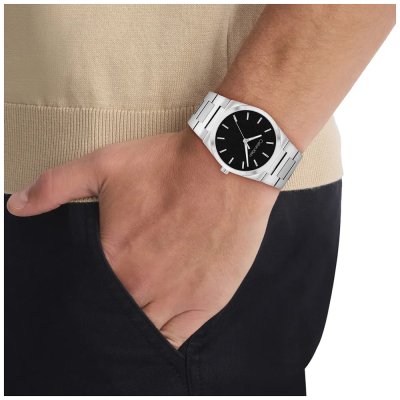 This Calvin Klein watch has a case made of stainless steel with a diameter of 40 mm and is fitted with a stainless steel band. Inside the case lies a Seiko Instruments Inc. movement and the watch features a Mineral crystal.