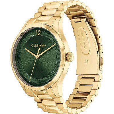 This Calvin Klein watch has a case made of stainless steel with a diameter of 40 mm and is fitted with a metal band. Inside the case lies a Miyota movement and the watch features a Mineral crystal.