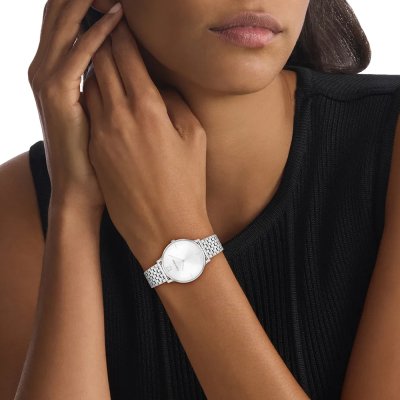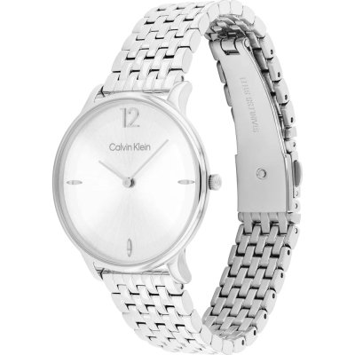 This Calvin Klein watch has a case made of stainless steel with a diameter of 34 mm and is fitted with a stainless steel band. Inside the case lies a Seiko Instruments Inc. movement and the watch features a Mineral crystal.