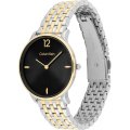 This Calvin Klein watch has a case made of stainless steel with a diameter of 34 mm and is fitted with a stainless steel band. Inside the case lies a Seiko Instruments Inc. movement and the watch features a Mineral crystal.