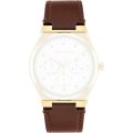 This Calvin Klein watch strap is made of leather and is attached to the watch by means of pushpins. The band has a width of 23 mm and is closed by means of a buckle. The strap has no straight mount which means that this strap is only suitable for the watches listed below.