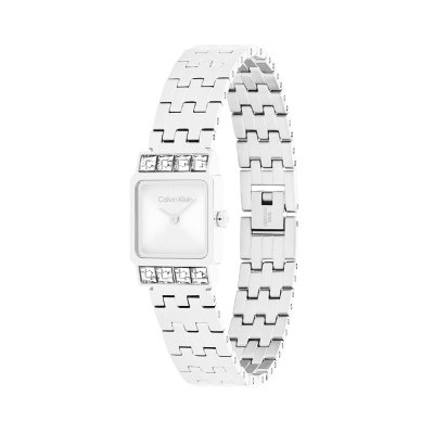 This Calvin Klein watch has a case made of stainless steel with a diameter of 16 mm and is fitted with a stainless steel band. Inside the case lies a Ronda movement and the watch features a Mineral crystal.